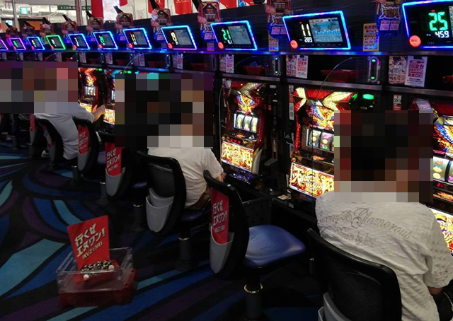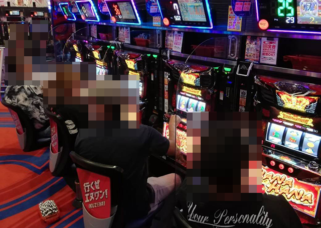 15時過ぎの「キングハナハナ-30」は7割以上の台が埋まり、大きなにぎわいに包まれていた。