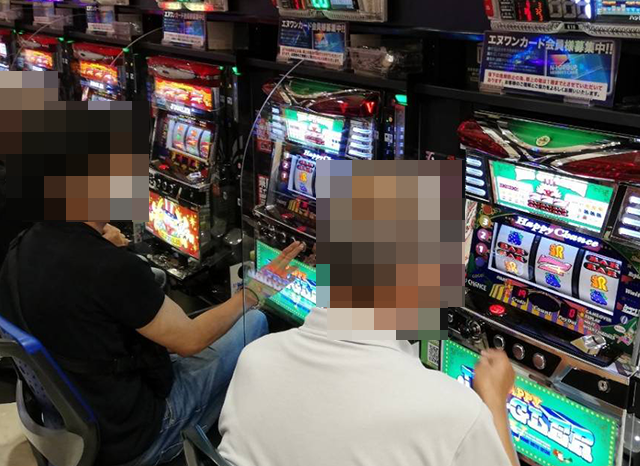2人が遊技をおこなっており、どちらの台でも明るい笑顔を確認している。