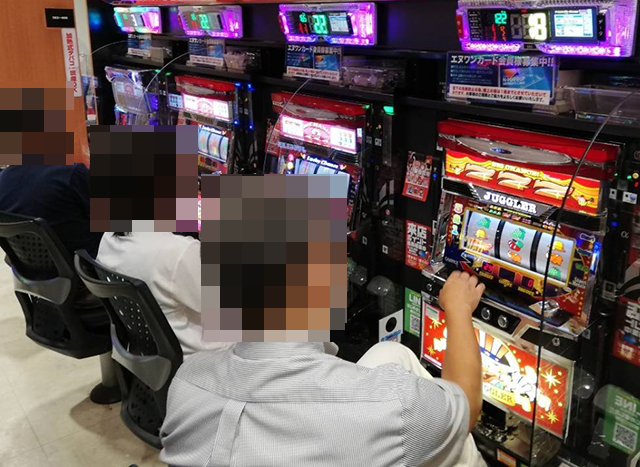 パチスロの状況をうかがうと、ジャグラーシリーズに活気のある光景が広がっていた。