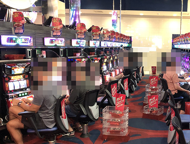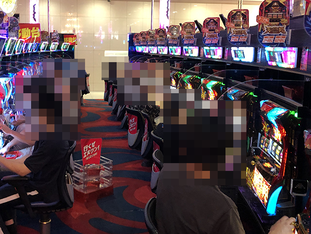 店内には多くのプレイヤーが集まり、パチンコもパチスロも活況となっていた。