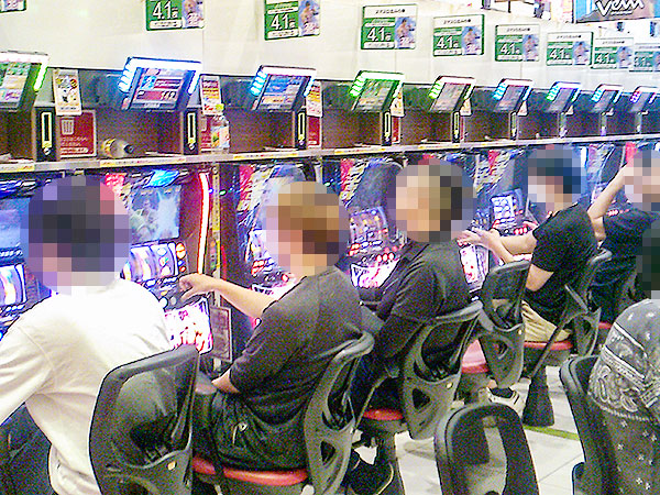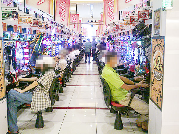 1円・0.2円と2種類用意された低貸し玉パチンコも高稼働。なかでも0.2円の支持が厚く、シマ全体にプレイヤーの熱気が感じられた。