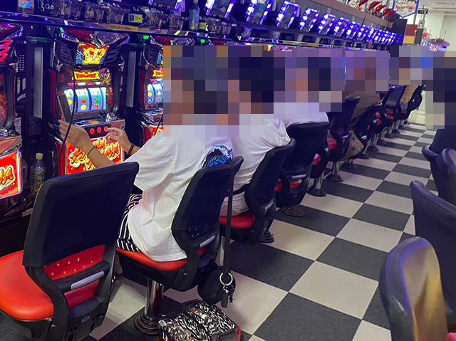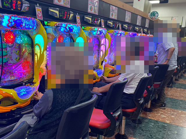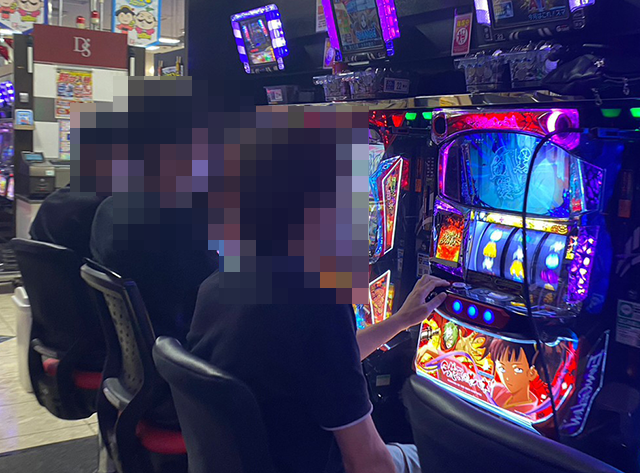 パチンコとパチスロの両方で、笑みを浮かべているプレイヤーを発見!