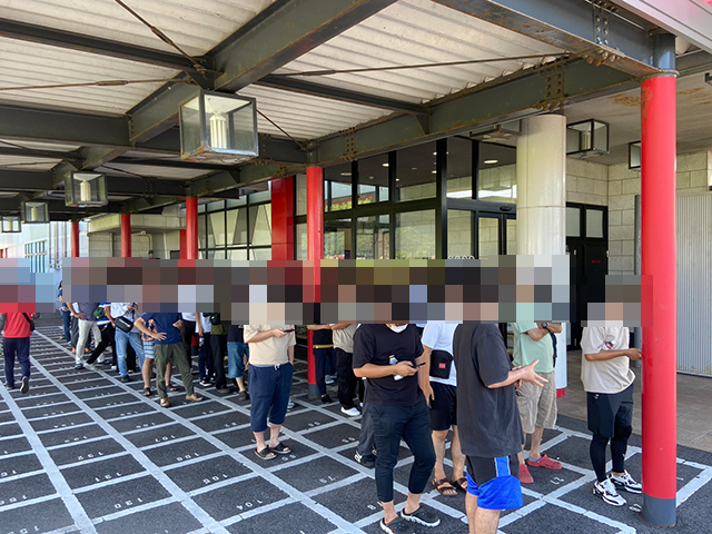 開店前に集まっていたプレイヤーは、約100名。屋根のある場所に並ぶため、直射日光を避けて待機できるようになっていた。