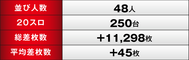 終わってみれば、優秀台、ピックアップ機種ともに好調で、トータルの差枚は+11,298枚を記録。安定した勝利で連勝を伸ばすことに成功した。次回も楽しみで仕方がないところだ。