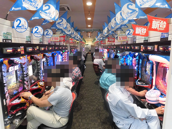15時半を過ぎたころのパチンコでは、2円パチンコの「ぱちんこCR真・北斗無双」や「CRスーパー海物語IN JAPAN」などが支持を受けており、盛り上がりを感じられるシーンも多かった。