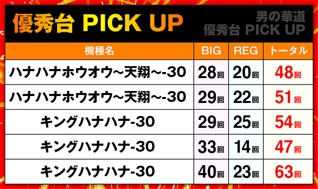 「ハナハナホウオウ~天翔~-30」と「キングハナハナ-30」に好調台アリ。