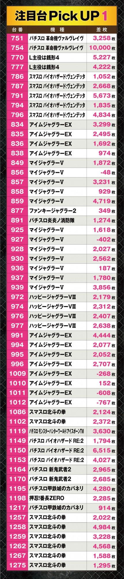 今回はスマスロ・6.5号機・ジャグラーシリーズを中心に好調台が誕生していた。この結果を踏まえて、次回のブラックエンジェルス降臨の際も是非参考にしてほしい。