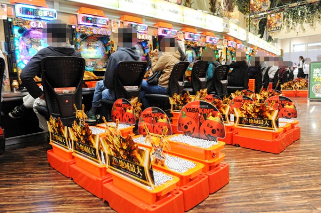 パチンコでは、この日40台も導入された『CRスーパー海物語IN JAPAN』や最新台『CRFアクエリオンEVOL』はもちろん、人気の『CR牙狼 魔戒ノ花』や『CRスーパー海物語IN沖縄3』などは瞬く間にほぼ満席。