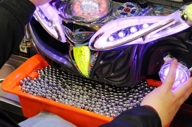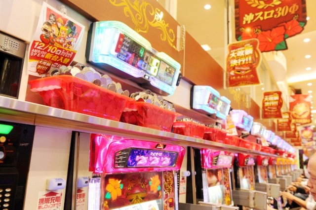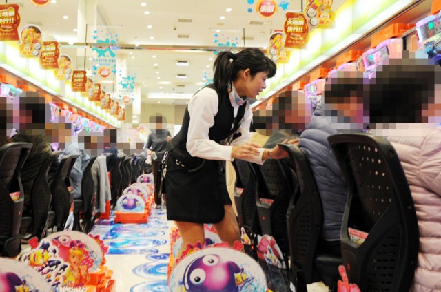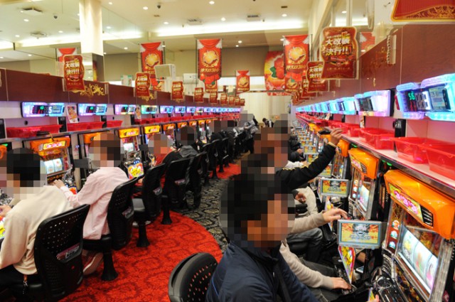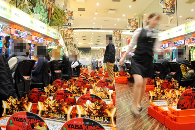 広いフロアに並ぶ合計1000台を越える遊技台が、次々と着席したファンたちで埋まっていきます。