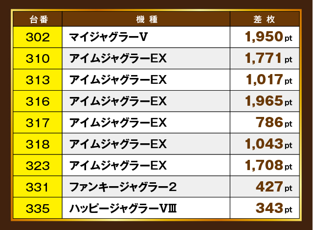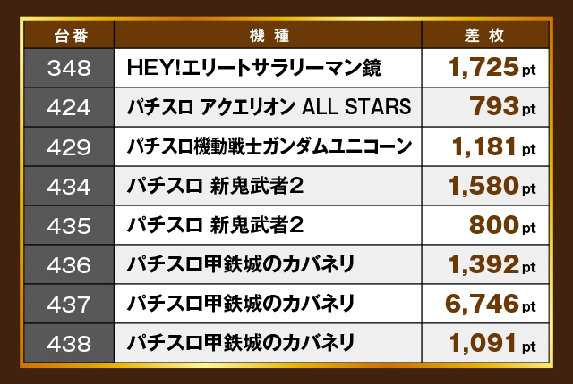 今回の「ウエスタン佐倉店」の結果は全国制圧!前々回が四カ国制圧、前回が五カ国制圧と、徐々に制圧区域を増やしていき、今回全国制圧に至った。店内を見回してみると、様々な機種から満遍なく好結果が生まれており、それがそのまま全国制圧に繋がったように思う。次回も好記録を連発させ、連続での全国制圧を達成してくれることだろう。