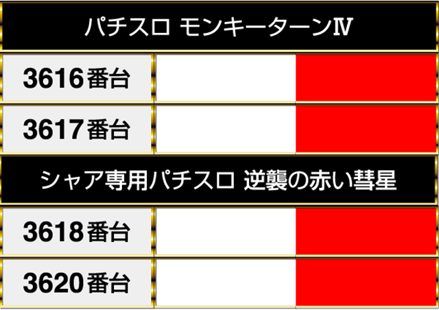 となりにある『シャア専用パチスロ 逆襲の赤い彗星』の2台をあわせると、4台が並んでプラスptを記録!