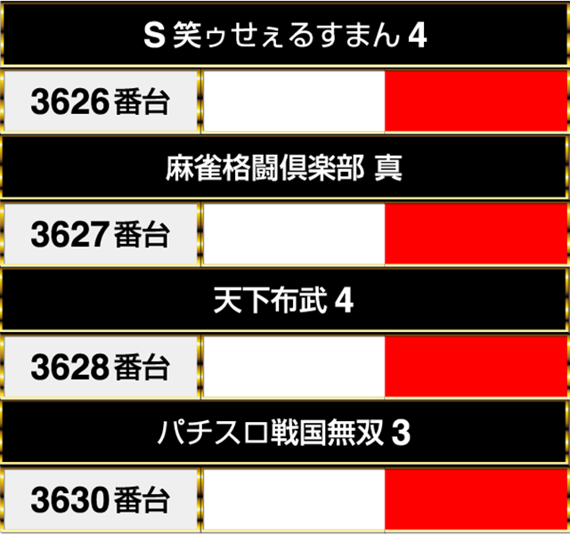最終的には、4機種すべてに4台並びでプラスptとなる場所があった。