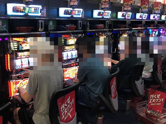 16時頃の「ハナハナホウオウ~天翔~-30」は8割ほどの台が埋まっており、シマ全体が活況。楽しげなプレイヤーがズラリと並んでいたことも印象に残っている。