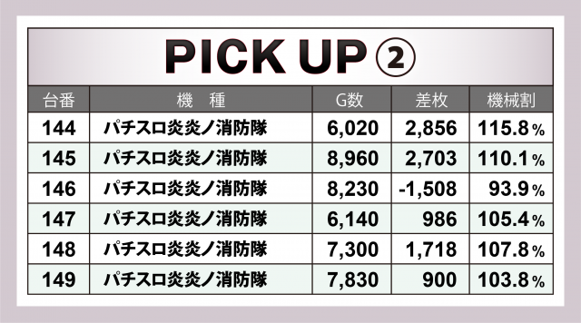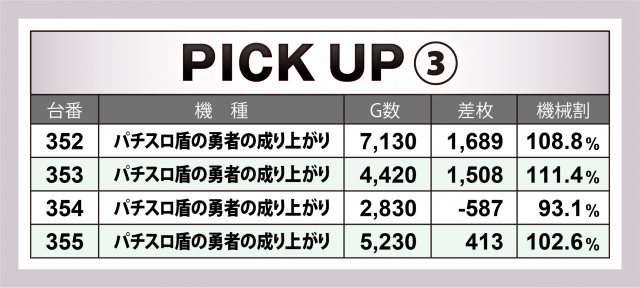 また『パチスロ 革命機ヴァルヴレイヴ』では+3千6百枚超×1&+2千枚超×2、『もっと!チバリヨ-30』『パチスロ炎炎ノ消防隊』『パチスロ盾の勇者の成り上がり』でも光る成績の台を複数カウントすることができた。