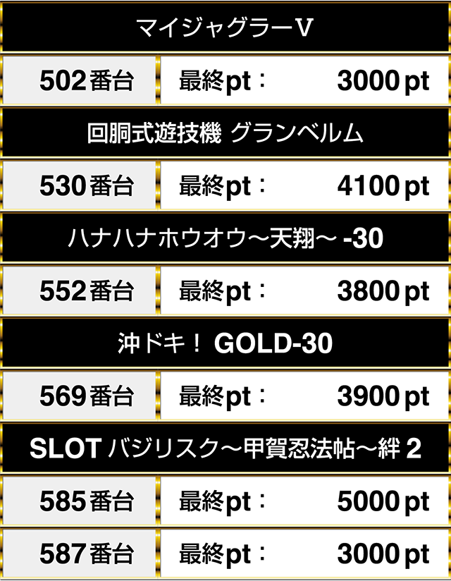 最終的には20台中12台がプラスptとなり、3800ptを記録する台もあった。
