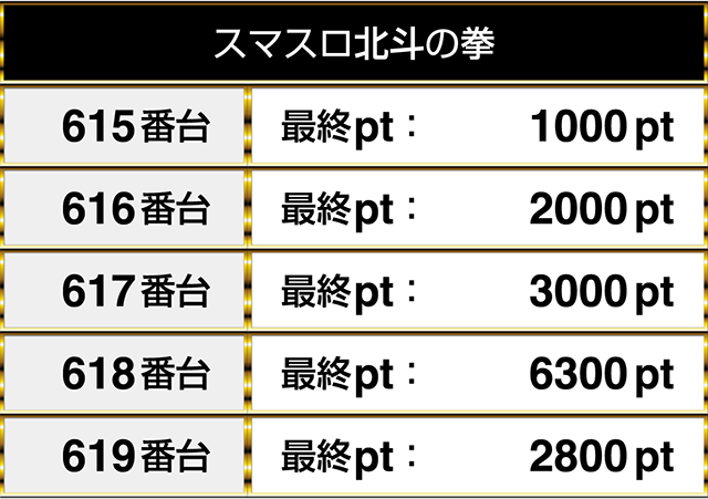 『スマスロ北斗の拳』は複数の台が2000ptを上回り、618番台は6300pt!