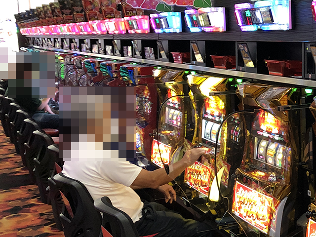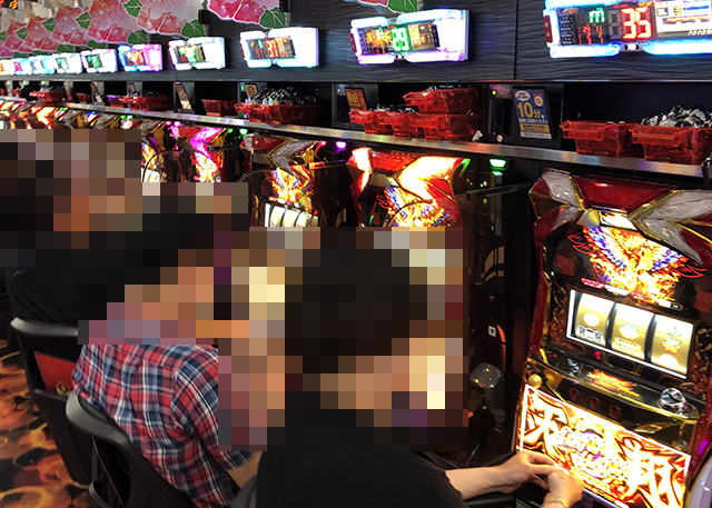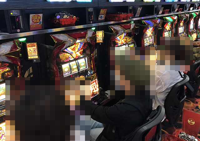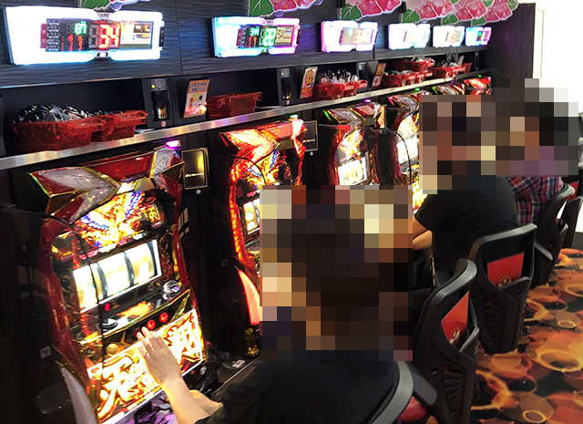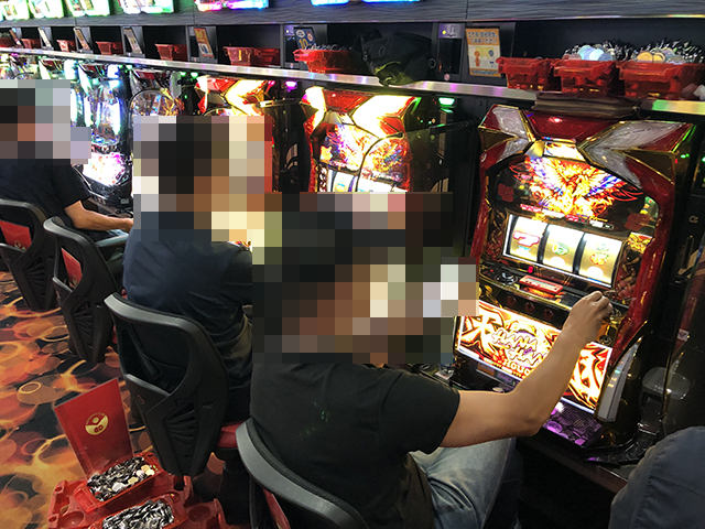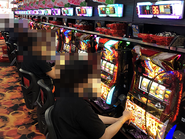 うれしそうに遊技をおこなっているプレイヤーが多く、シマ内は活況。