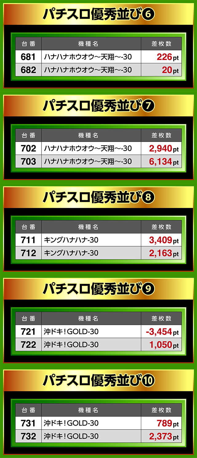 「スマスロ北斗の拳」の601番台と602番台が並んでプラスとなり、601番台は6,886pt!