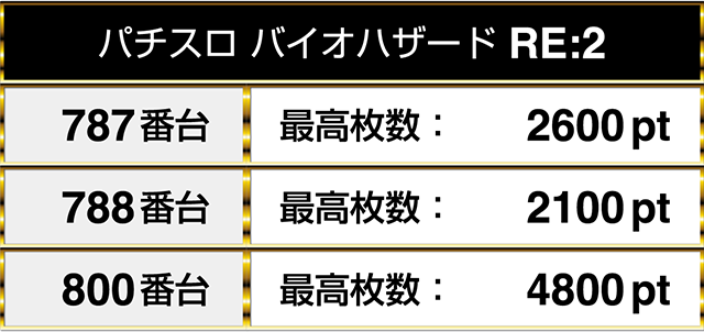『パチスロ バイオハザード RE:2』は3台が連なって2000ptを上回り、1台は4800pt!