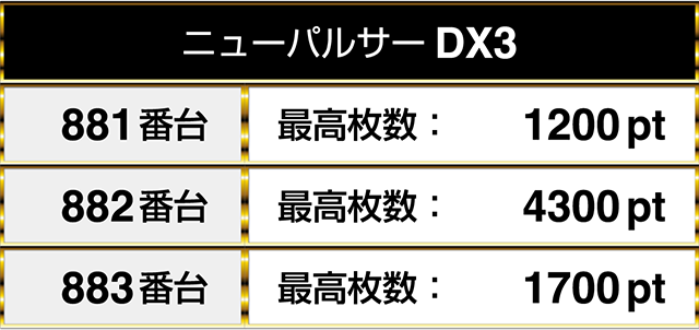 設置台数は3台で、最終的にはすべての台が1000ptオーバー!