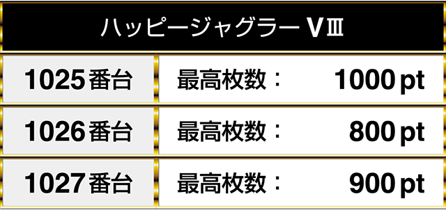 『ハッピージャグラーVⅢ』も3台が連なってプラスptとなった。