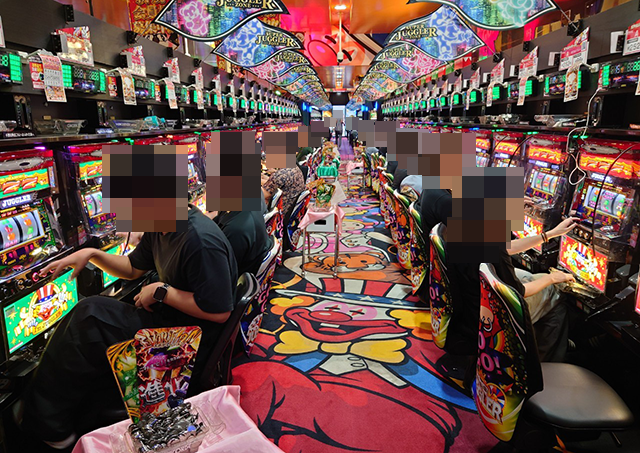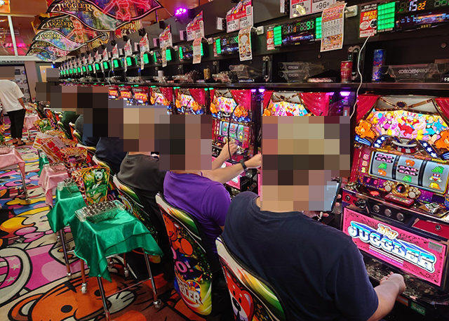 パチスロをみると、ジャグラーシリーズに笑顔のプレイヤーがズラリと並んでいた。