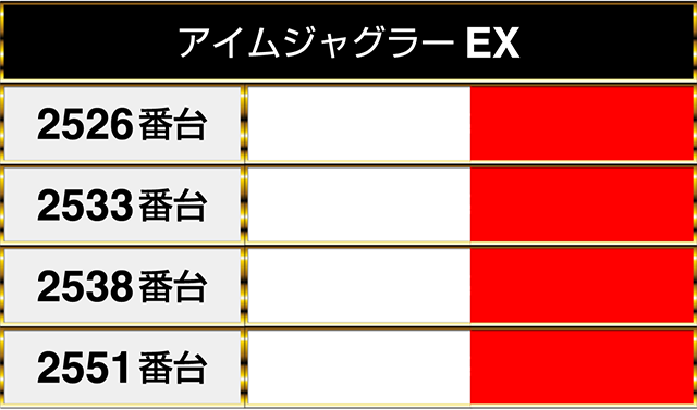 『アイムジャグラーEX』の2526番台や2533番台などがプラスptを記録!