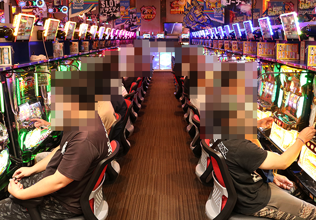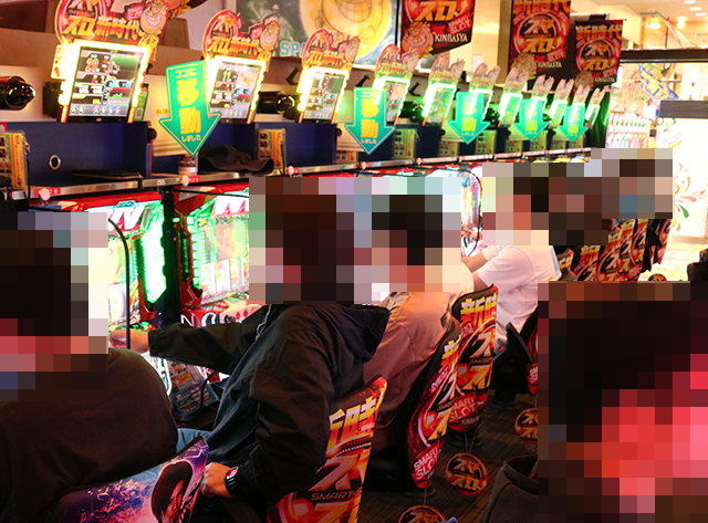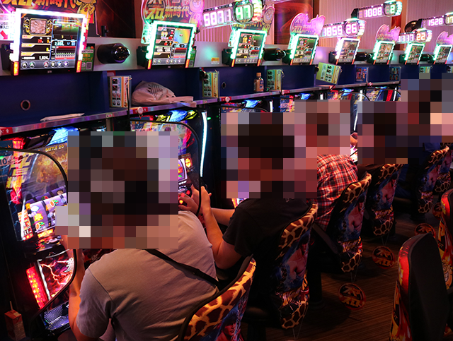 うれしそうに遊技をおこなう姿が並び、シマ内は明るい雰囲気に包まれていた。