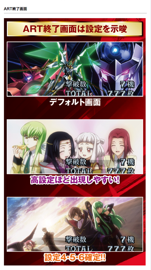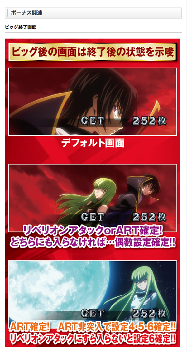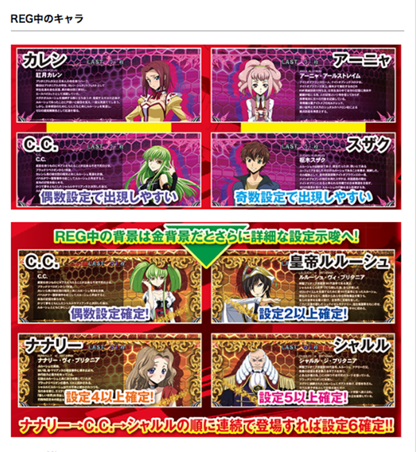 ▼「パチスロコードギアス反逆のルルーシュR2」設定推測ポイント▼