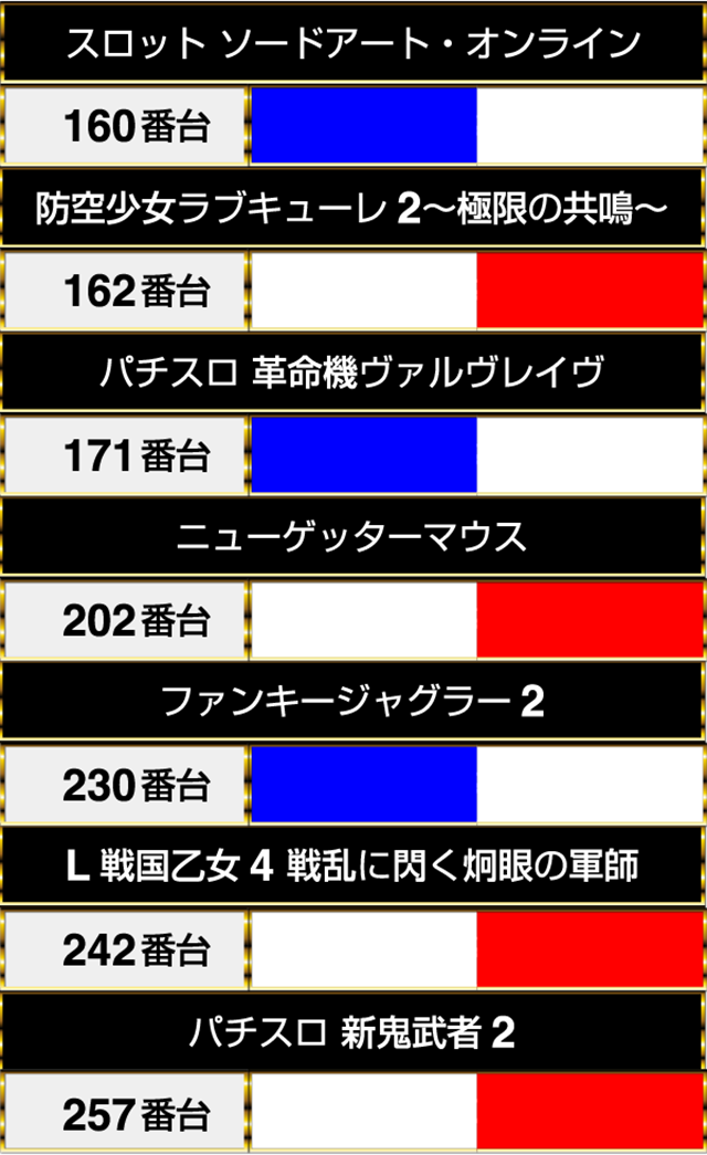 『防空少女ラブキューレ2〜極限の共鳴〜』や新台の『L戦国乙女4 戦乱に閃く炯眼の軍師』などにもプラスptを記録する台があった。