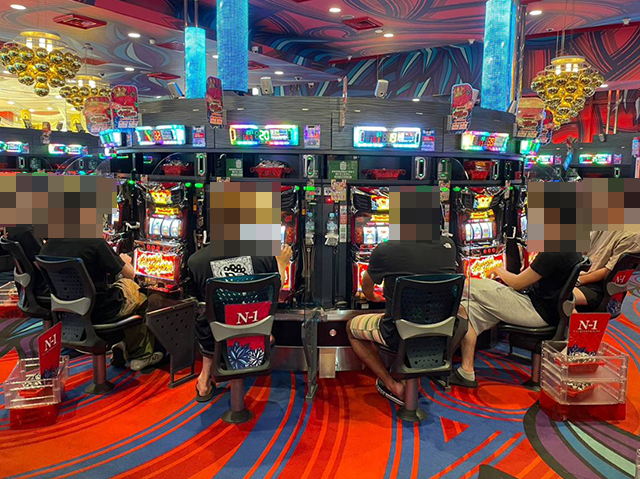 パチンコもパチスロもにぎわっていた「エヌワン西新発田店」。心から遊技を楽しんでいるといった表情をたくさんみられた。
