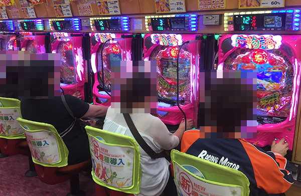 15時半ごろのパチンコの状況をうかがうと、4円パチンコの「CRスーパー海物語IN沖縄4」といった新台が人気を集めていた。