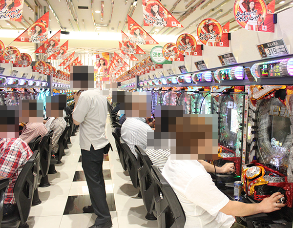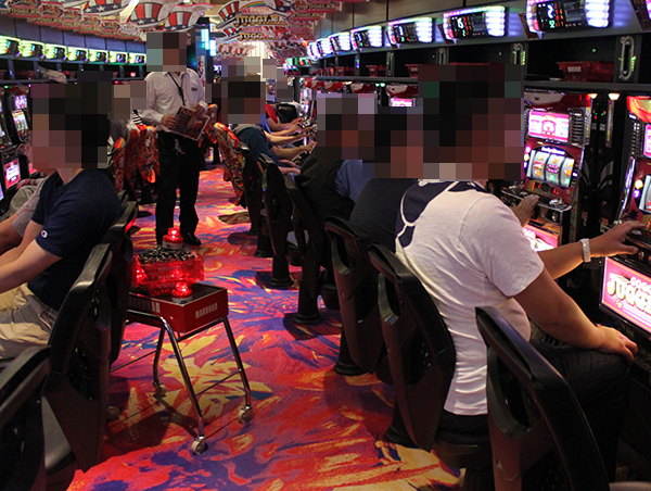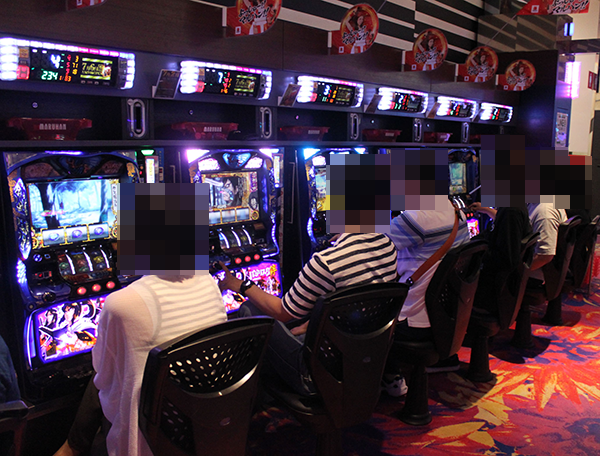 ボーナスタイプの「ハナビ」や定番のジャグラーシリーズにも、快活な笑みを浮かべているプレイヤーの姿があった。