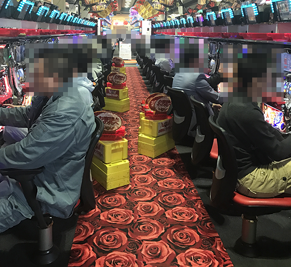 朝イチに集まっていたプレイヤーは約50名。遊技を心待ちにしているといったプレイヤーが多く、明るい雰囲気も感じられた。