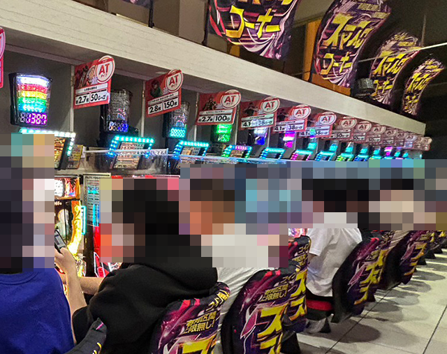 群青の旗を掲げてパチスロコーナーをまわっていると、さまざまな機種で、楽しそうに過ごしているプレイヤーを目にした。