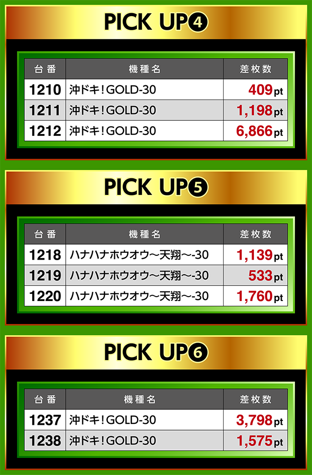 PICK UP並び・1212番台「沖ドキ!GOLD-30」…6,866pt