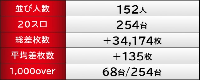 上表をご覧の通り、店内は大きな盛り上がりに包まれていた様子が手に取るように分かるだろう。『パチスロ 革命機ヴァルヴレイヴ』276番台+13,080枚・『スマスロキン肉マン~7人の悪魔超人編~』321番台+10,224枚という大きな熱量を確認できれば、5台の万回転OVERが発生している。幅広い機種が名を連ねている点も見逃せない部分で、館内は賑わっていたと断言できる内容だ。