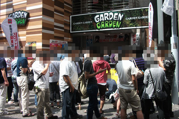 朝から大勢の人が集まり、時間が経つにつれてにぎわいが増していった「メガガーデン所沢スロット館」。