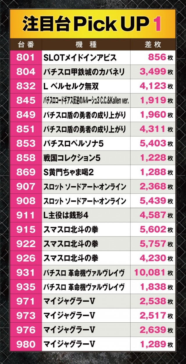 さらに『パチスロペルソナ5』や『スロット ソードアート・オンライン』、『スマスロ北斗の拳』も5,000枚オーバーと活況。機種性能を上手く引き出す好調台が注目を集めていた。