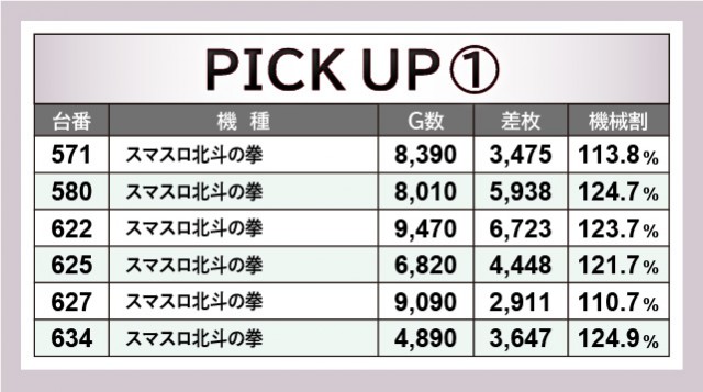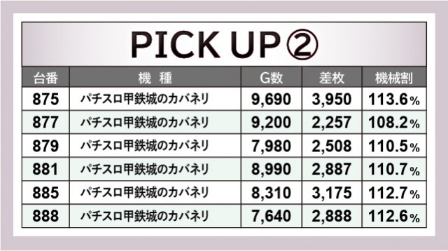 『スマスロ北斗の拳』は朝から活気が絶えず、それでいて凄まじい熱気を放っていたエリアだ。622番台+6,723枚を筆頭に4~5千枚OVERが発生するなど、ファンは有意義な時間を過ごせたことだろう。また同じく人気の高い『パチスロ甲鉄城のカバネリ』も同様で、コンスタントなAT当選により2~3千枚OVERが多発。こちらも終日を通して打ち込まれていたため、満足度の高い1日を過ごせたことだろう。