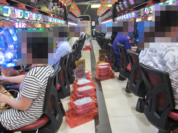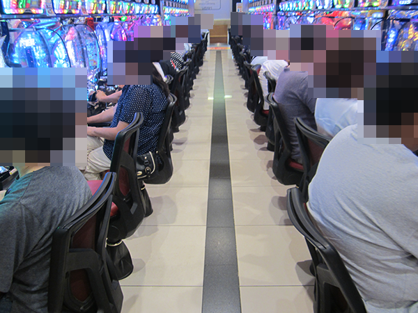 1円パチンコと0.5円パチンコもほぼ満席といった状況が続いており、たくさんのプレイヤーでにぎわっていた。