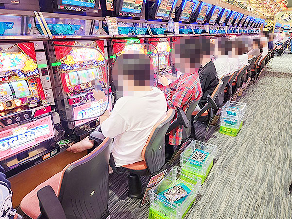 店内では貸し玉料金を問わず様々な機種で、心ゆくまで楽しむプレイヤーの姿が見られた。