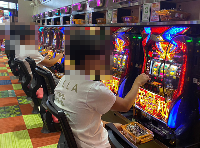 14時頃には、「PA大海物語5 Withアグネス・ラム」や「Pスーパー海物語 IN 沖縄5」など、さまざまな海物語シリーズが楽しまれていた。