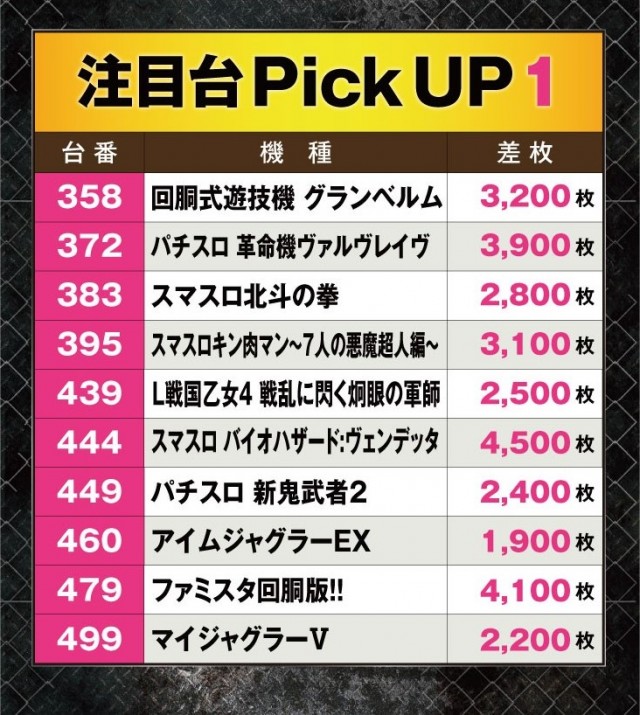 今回まず目に付いたのが9月導入の新台機種だ。『回胴式遊技機 グランベルム』や『L戦国乙女4 戦乱に閃く炯眼の軍師』『ファミスタ回胴版!!』と導入直後の最新台から好調台が誕生しており、どれも2,000枚オーバーと見事なパフォーマンスを披露している。