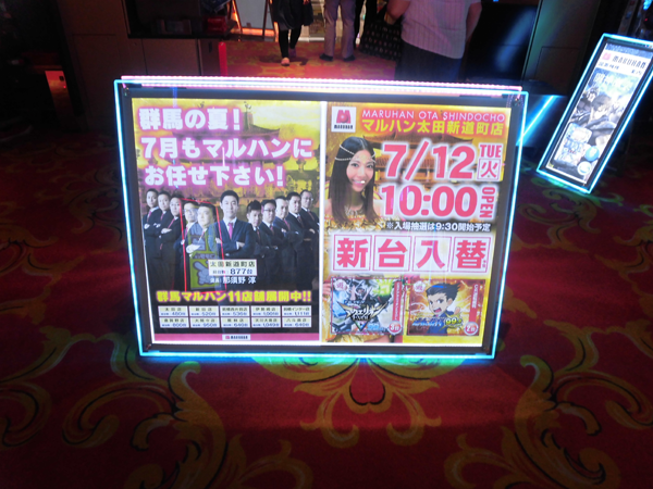大きな盛り上がりのなかに際立つ笑顔は明るい。フレームにおさまらないほどの魅力があった。「マルハン太田新道町店」の一面はパチスロコーナーで決まりだろう。