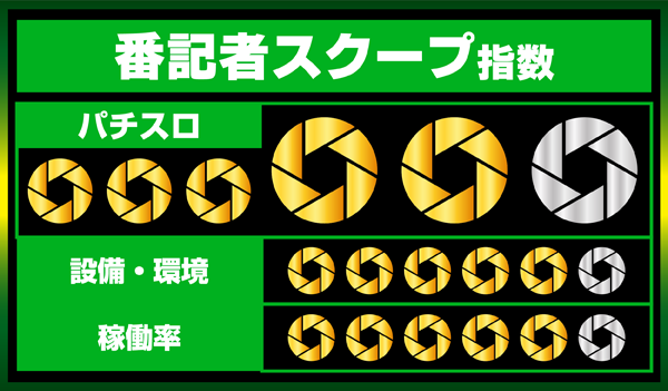 特筆すべき要素が多数。大勢のユーザーによって活気づいている光景は、写真でも映えている。「マルハン八斗島店」の一面はパチスロコーナーで決まりだろう。