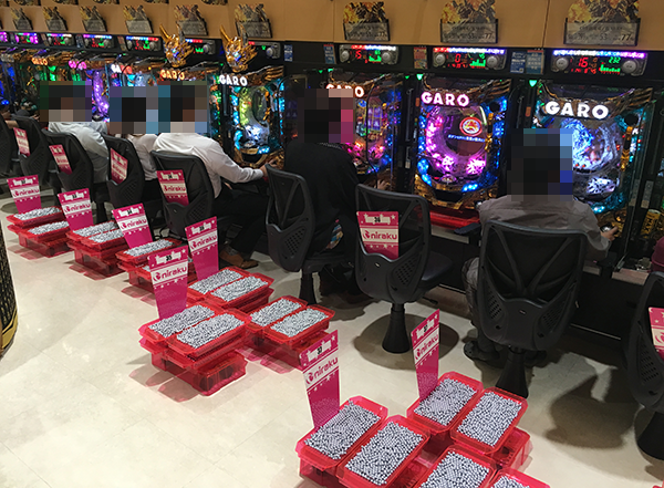 夕方頃の4円パチンコのなかで、もっとも輝きを放っているように感じられたのは「CR牙狼 魔戒ノ花」。機種の特徴を活かしているような姿が多く、満足度も高そうであった。