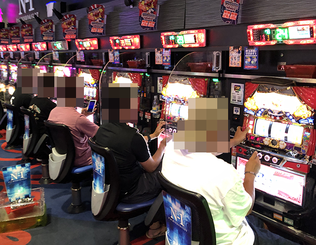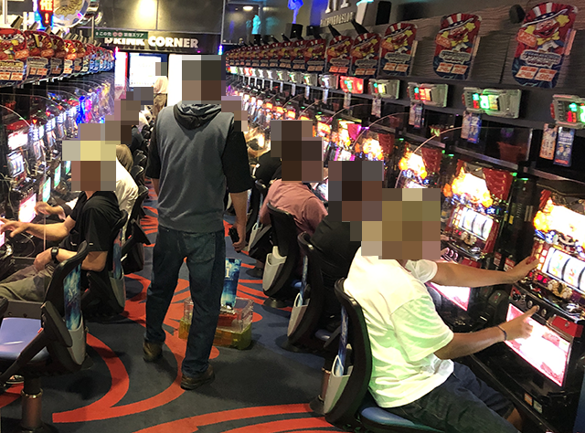 パチンコとパチスロの両方に笑顔のプレイヤーがおり、いたるところから活気が感じられた。