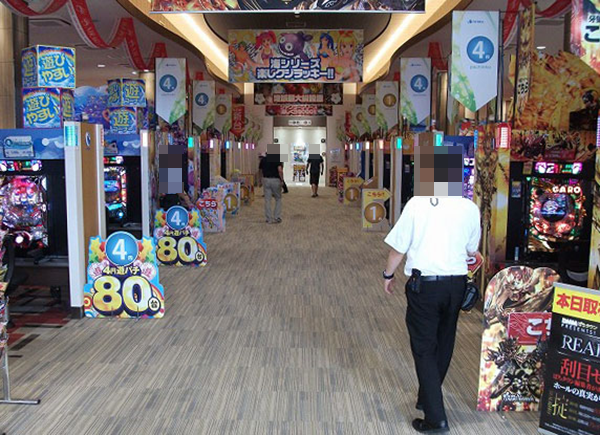 パチンコ・パチスロの各シマには、貸し玉料金がみやすく書かれた旗やパネルなども設置され、初めて来店をする人でも安心して遊べるような環境が整っている。