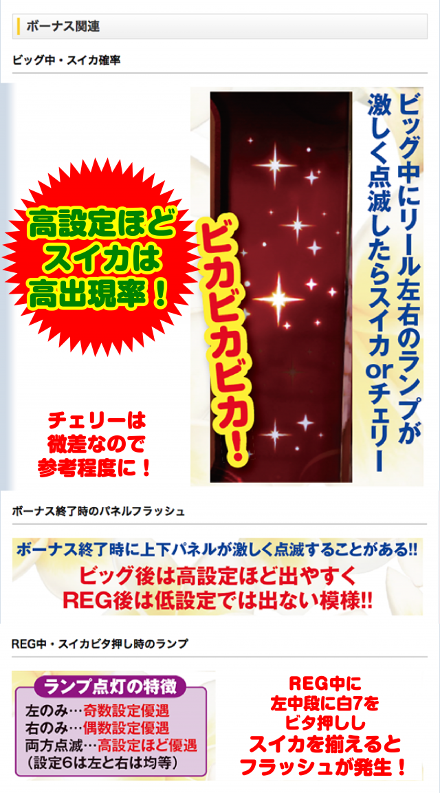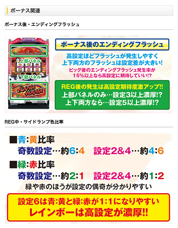 また、ボーナス確率も注目しておきたい要素のひとつ。REGだけではなく、BIGや合算確率も加味して推測しよう。